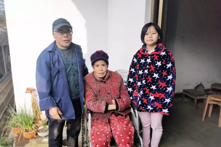 第一戶,潘同學(xué)家住臨安板橋鎮(zhèn),房屋仍是三十年前的樣貌,當(dāng)天潘同學(xué)的爸爸外出打零工,僅爺爺奶奶在家,母親在她很小的時(shí)候離家出走至今未歸。爺爺年事已高只能在家操持家務(wù),奶奶因?yàn)檐嚨渹送饶_需要靠輪椅行動(dòng)。全家的收入僅靠父親打工維持。